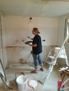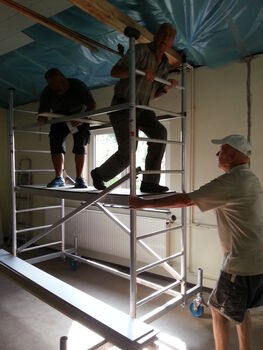 Im letzten Sommer begannen wir mit der Renovierung unseres Probenraums. In rund 800 Arbeitsstunden wurde die Elektrik komplett erneuert, die Wände wurden verputzt und gestrichen, eine neue Holzdecke incl. Dämmung eingebaut, neue Fenster gesetzt, neue Böden verlegt, die alten Holztüren ausgebessert und gestrichen sowie eine neue Küche eingebaut. Nun neigt sich die Arbeit dem Ende entgegen und wir freuen uns den Raum am 26.01. offiziell einzuweihen.
